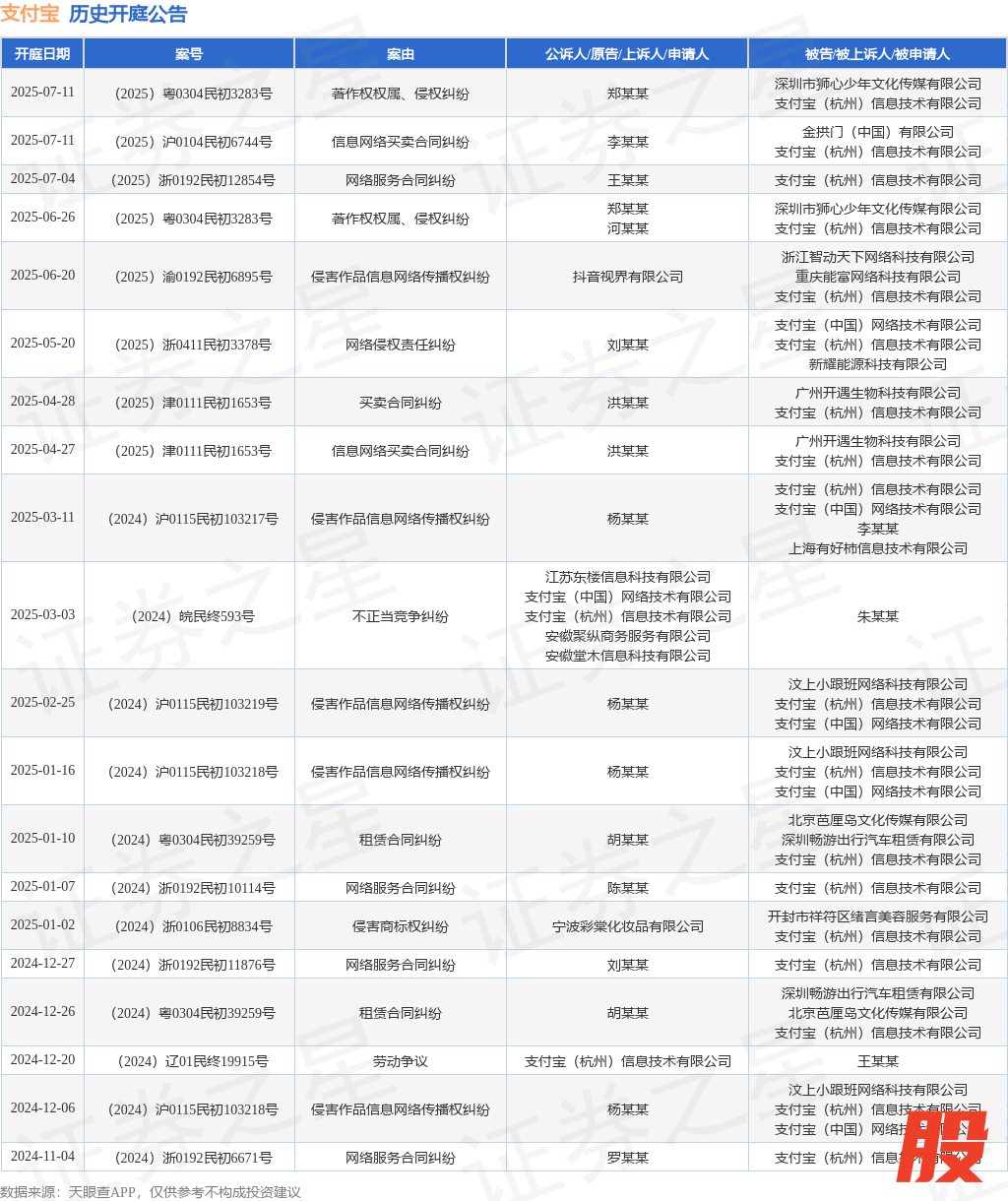 本站消息,根据天眼查APP显示泸深配,近日公布了一则支付宝(杭州)信息技术有限公司作为被告/被上诉人的开庭公告,详细内容如下: